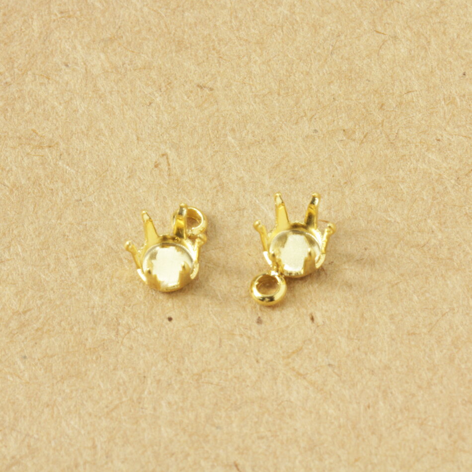 [10個]サージカルステンレス ヨコ向き カン付き 立て爪 台座 6mm[ ゴールド 金 ] パーツ 金アレ