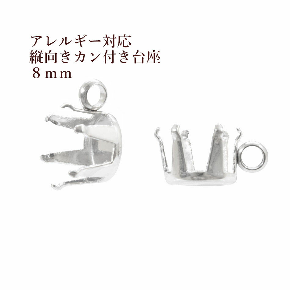 [10個]サージカルステンレス 縦向き カン付き 立て爪 台座 8mm[ 銀 シルバー ] パーツ 金アレ