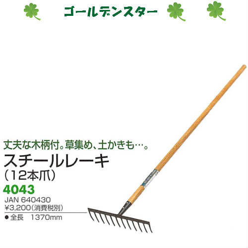 キンボシ 大型園芸用品スチールレーキ・12本爪4043※取り寄せ商品です。3〜4日かかります。キンボシ・ゴールデンスター・草刈・芝刈機・ガーデニング・庭・除草・手入れ・刈込・刈込作業・